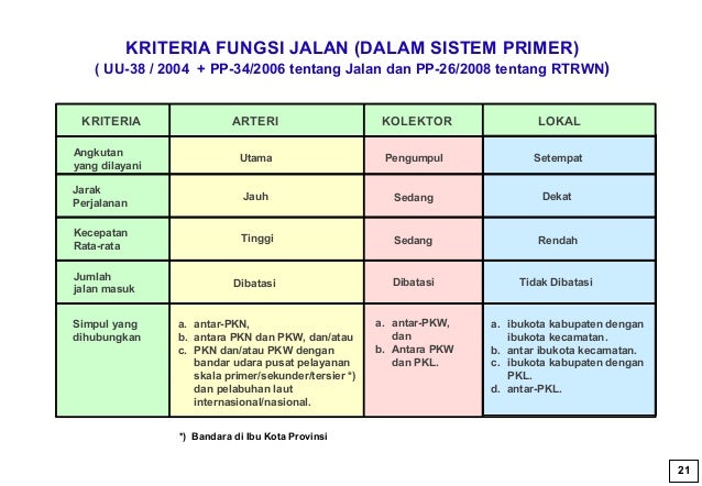 2 Jalan arteri sebagaimana dimaksud pada ayat 1 merupakan jalan umum yang berfungsi melayani angkutan utama dengan ciri perjalanan jarak jauh kecepatan rata-rata tinggi dan jumlah jalan masuk dibatasi secara berdaya guna. Berdasarkan Undang-Undang Republik Indonesia Nomor 38 Tahun 2004 tentang Jalan dan Peraturan Pemerintah Republik Indonesia Nomor 34 Tahun 2006 tentang Jalan disebutkan bahwa Sistem Jaringan Jalan merupakan Satu kesatuan jaringan jalan yang terdiri dari Sistem Jaringan Jalan Primer dan Sistem Jaringan Jalan Sekunder yang terjalin dalam hubungan. Dapatkan informasi inspirasi dan insight di email kamu.